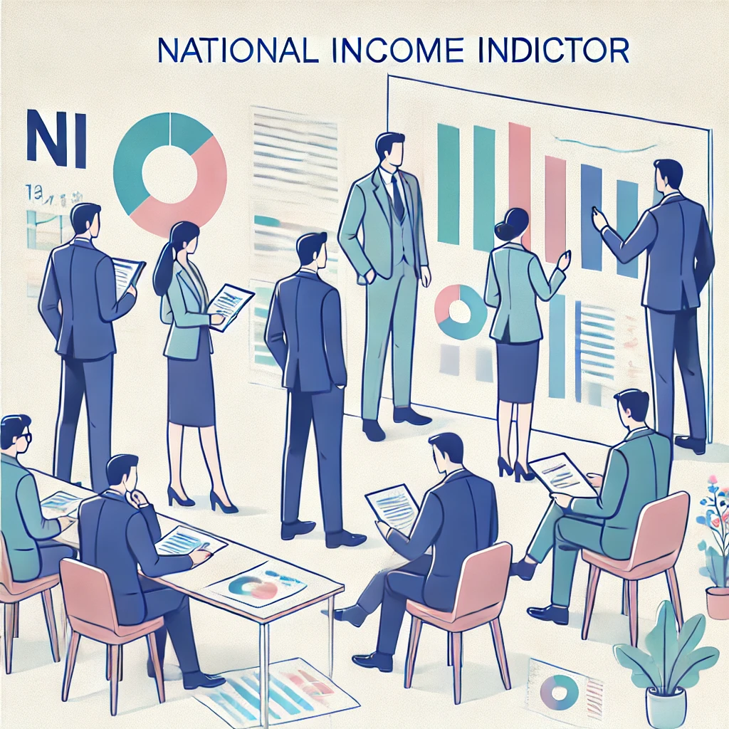 예시: 친구들이 각자 일을 해서 돈을 벌었다고 생각해 보세요. 친구들이 받은 월급, 일하면서 번 이윤, 은행에 저축해서 받은 이자, 땅을 빌려주고 받은 돈 모두가 국민소득(NI)에 포함돼요. 즉, NI는 국민들이 일하고 벌어들인 소득의 총합이에요.